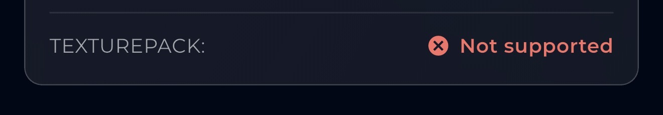 | Not supported | Texture packs will not work on this server. This usually means the server's anti-bot system blocks our service, or the server simply doesn't have a server pack. |